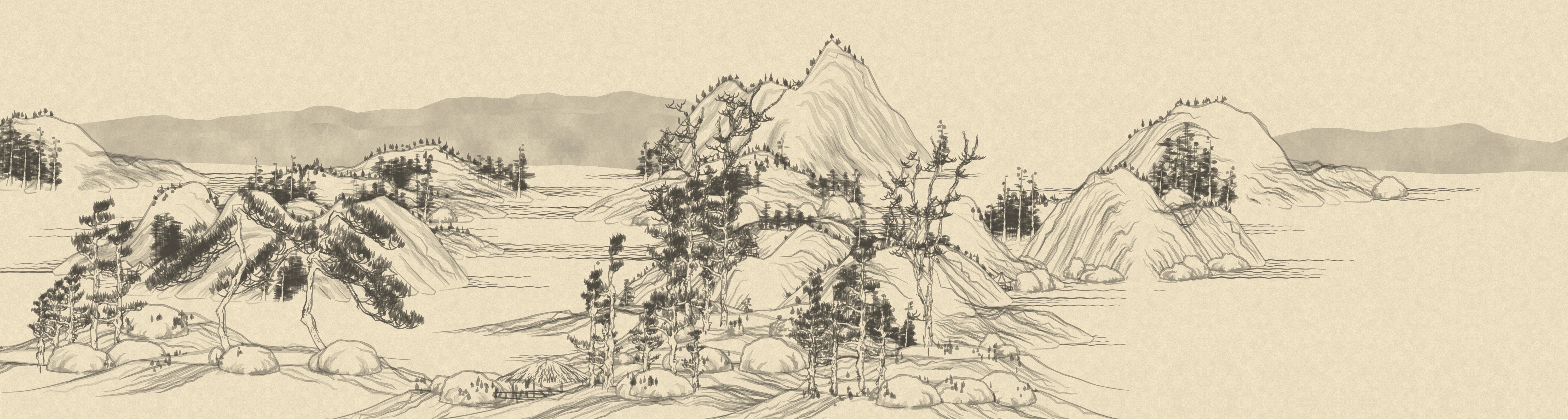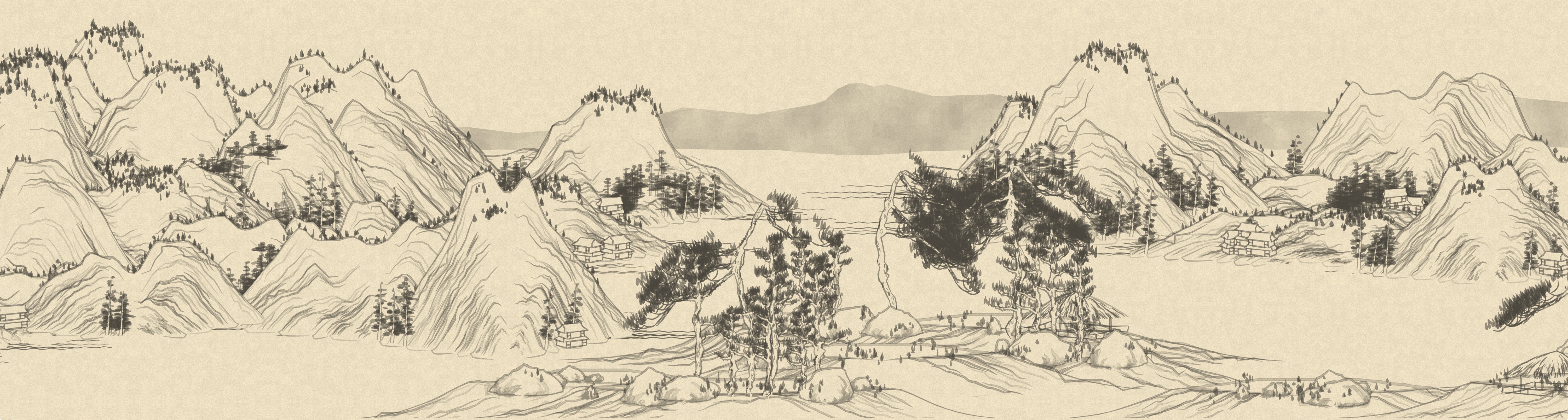 Procedurally generated Chinese landscape painting.