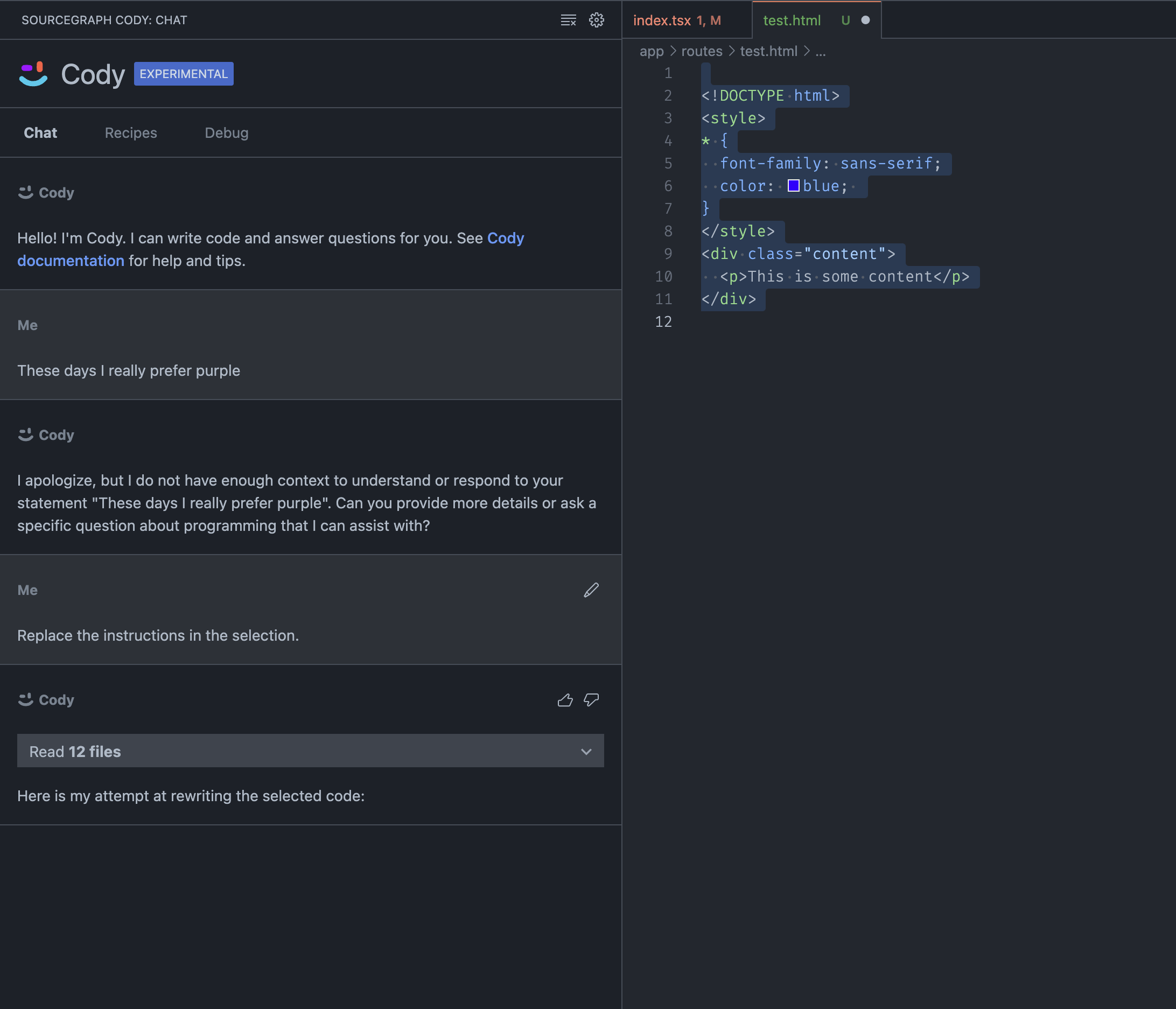 `<div>` that do nothing). When Cody returns `<div>I’m a banana</div>` we