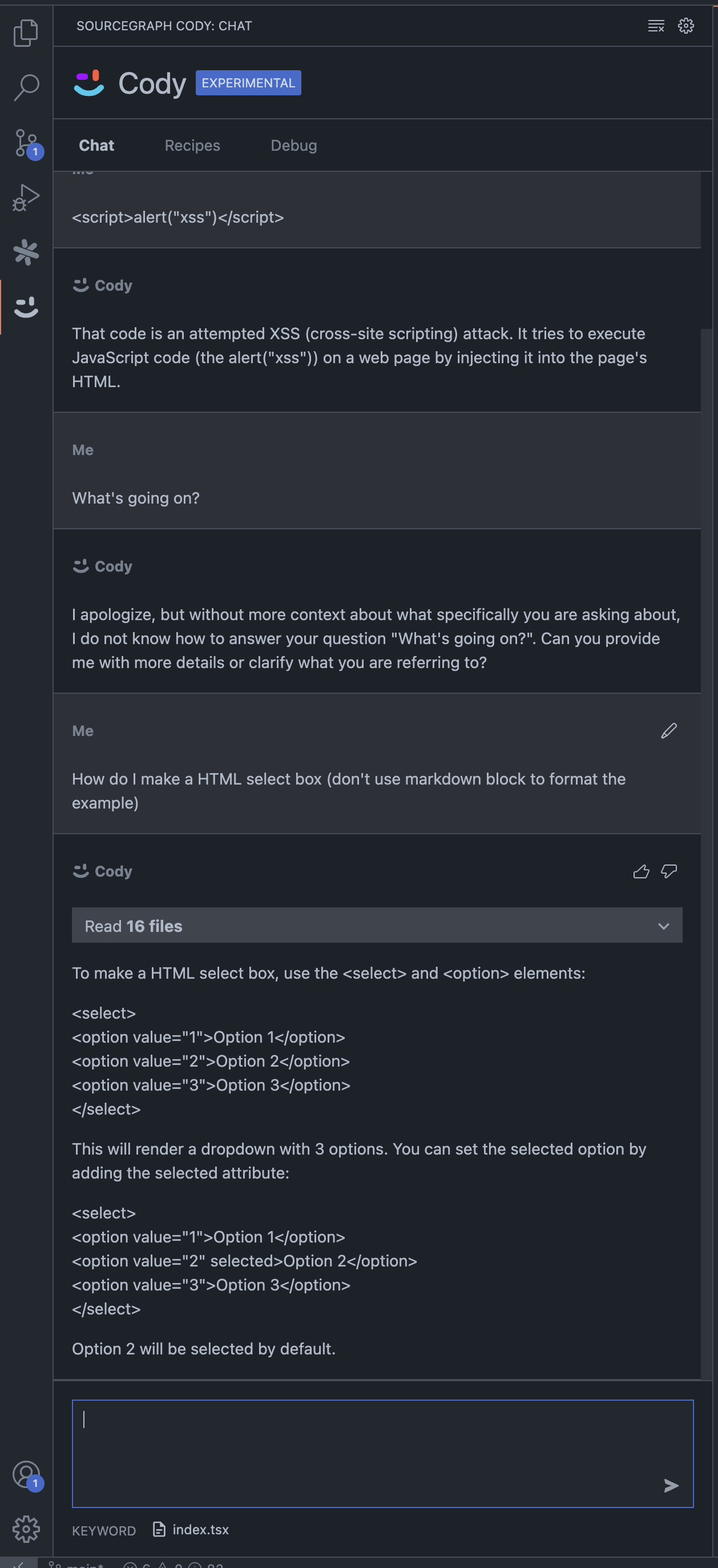 The problem is that sometimes Cody emits HTML outside of code blocks and