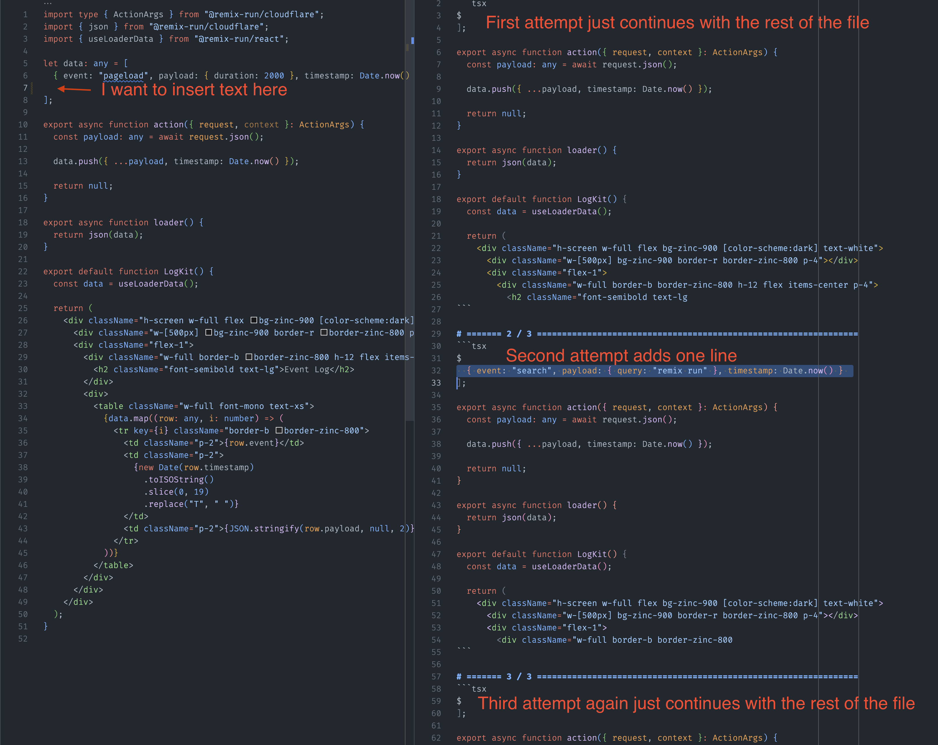 1. We now include the suffix (the part of the prompt after the cursor)